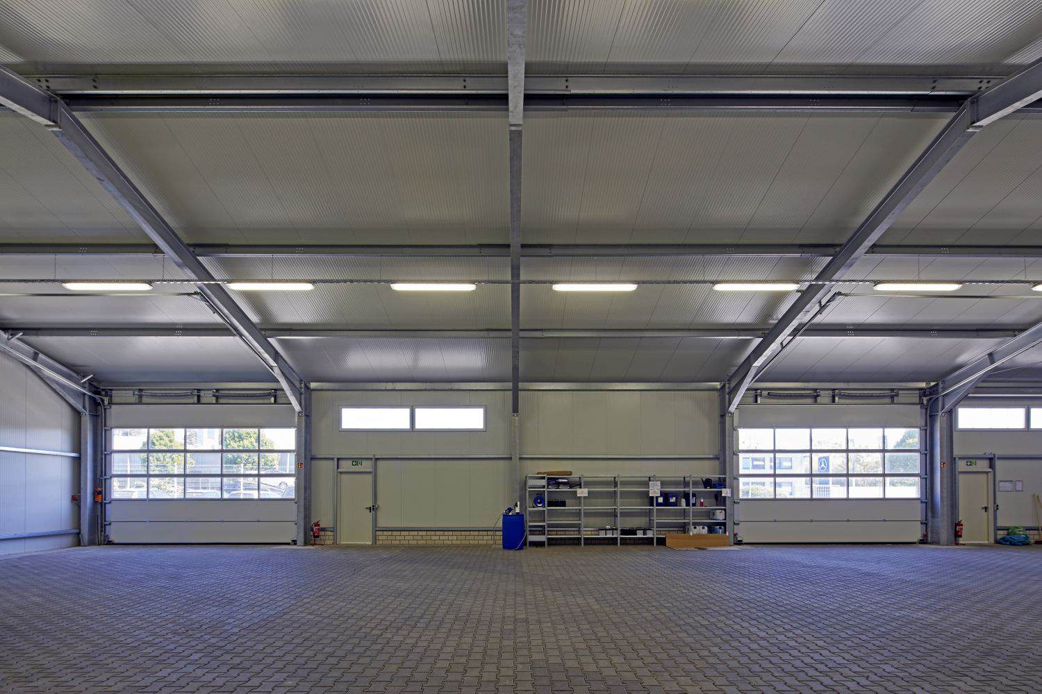Die PACO-Lichtbänder im oberen Wandbereich sowie die, mit jeweils drei Lichtsektionen ausgestatteten Sektionaltore, lassen ausreichend Licht ins Gebäude.